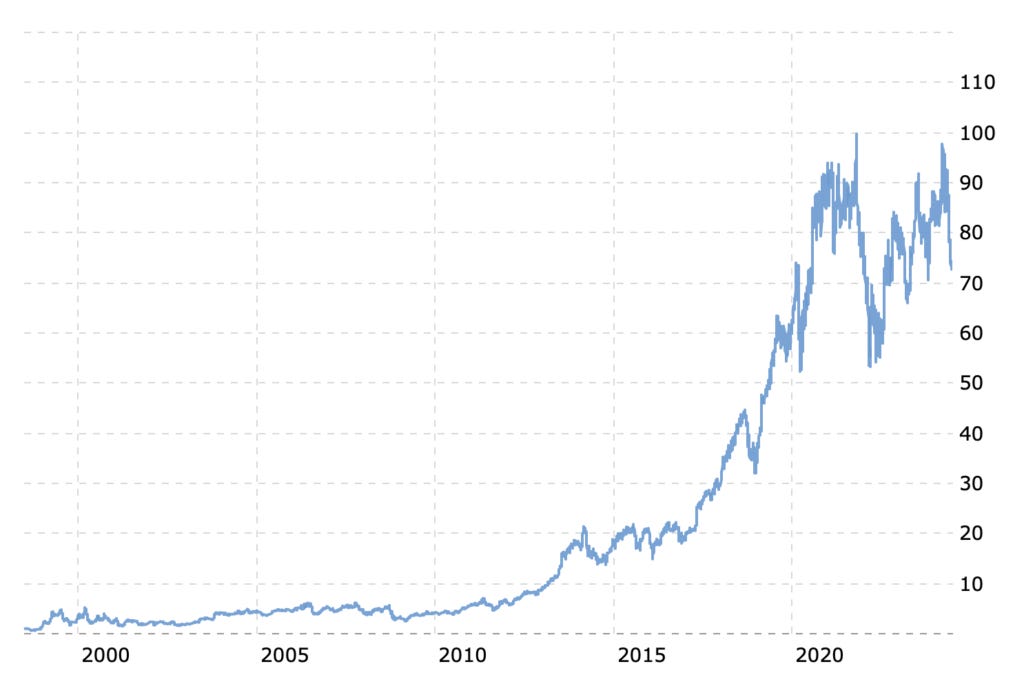 CoStar‘s valuation direction has trended decidedly up over the last decade.
