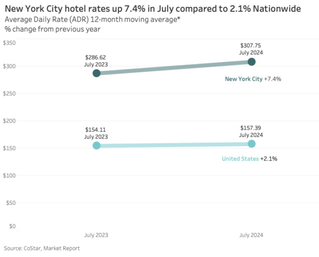 Airbnb landlords are creating short-term housing out of existing housing. Back in 2022, NYC wanted to significantly slow down Airbnb and other short-term rentals at the request of the powerful hotel lobby since there were no enforcement teeth. So in 2023, the city passed powerful penalties to Airbnb landlords to enforce the ban and it worked. We saw Manhattan rental listing inventory surge when the September 2023 ban came into effect and Airbnb supply plunged from 23,000 to 3,700. Hotel occupancy surged and the average stay cost a whopping $417 per night. This year Airbnb pushed out a study using Costar data showing NYC hotel rates rising faster than national levels. Despite the loss of most NYC revenue, Airbnb is seeing rapid income growth.