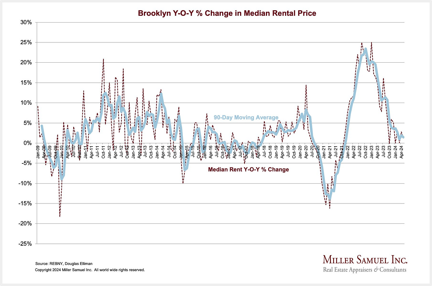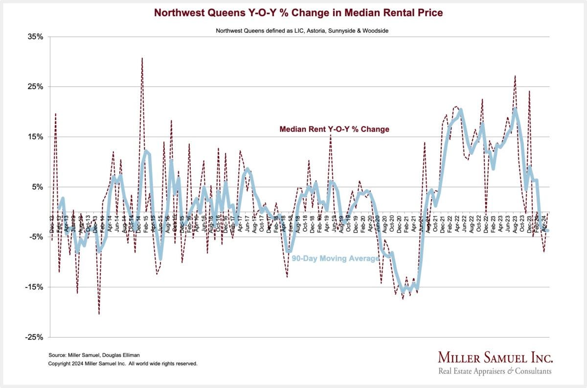 Zumper ranked New York number one in the U.S. with the highest rent. New York rents rose 7x faster than wages, hence the housing affordability crisis here. We’re splitting hairs when we say rent is rising or falling right now since it rose so fast it is considered unaffordable at current elevated levels.