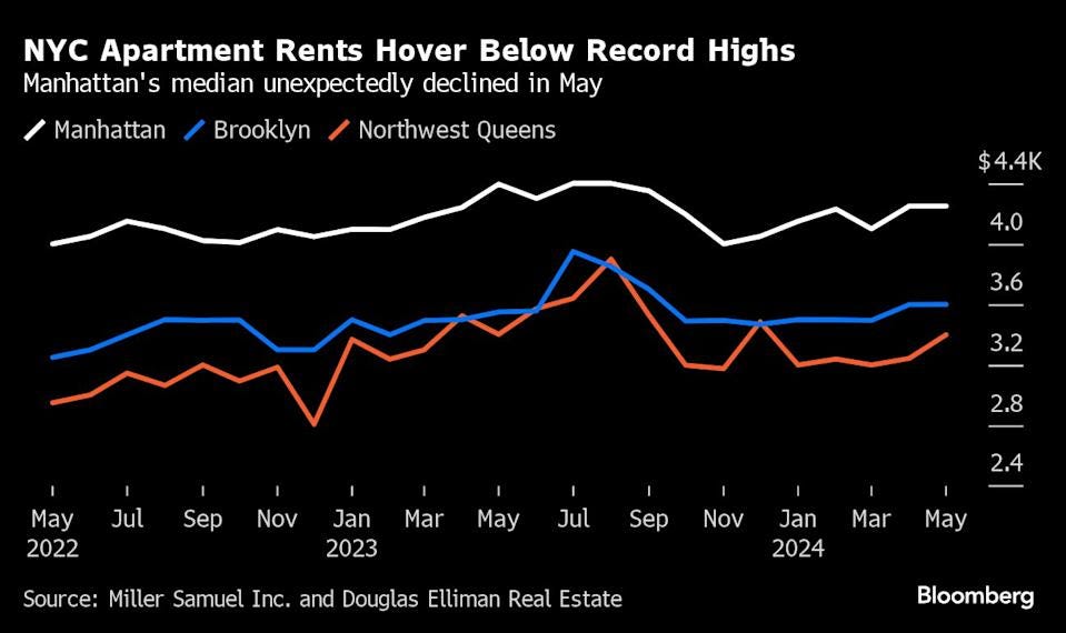Manhattan rents fell unexpectedly as Brooklyn & Queens rents barely budged