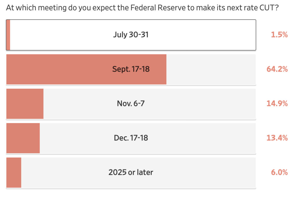 Fed has been delaying a rate cut because they needed to make sure inflation was under control. They got it wrong, in the context of housing, by keeping rates too low for too long during the pandemic. In other words, they were behind the times and their lag created massive distortions in the housing markets all to tame inflation. The WSJ consensus for a rate cut by their survey of economists seems much more certain about September.