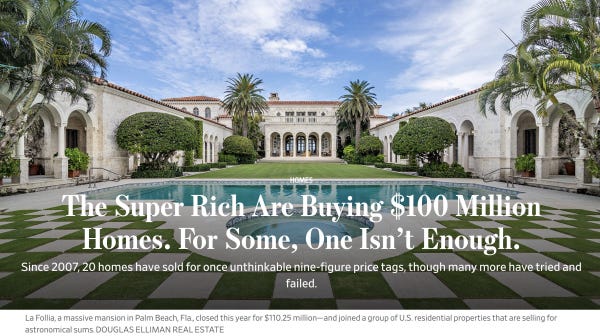 The Super Rich Are Buying $100 Million Homes. For Some, One Isn’t Enough. [Wall Street Journal]