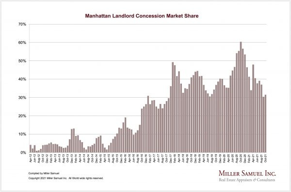 – The market share of landlord concessions fell by more than a third from the near-record levels seen last year