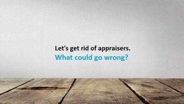 Remember liar loans of a decade ago? Those same people want to do away with appraisers.