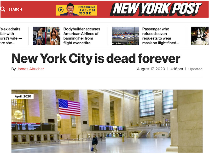 Remember this headline back in 2020? New York City is dead forever. The article went viral and was written by a comedy club owner and former hedge-fund manager. The city housing market subsequently boomed. Apparently we love to be stressed out for no reason.