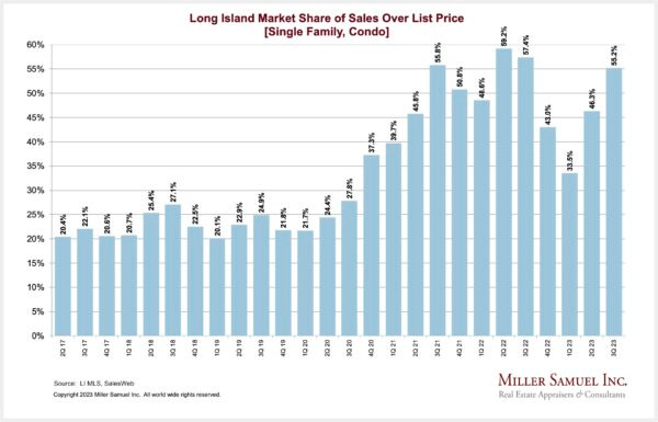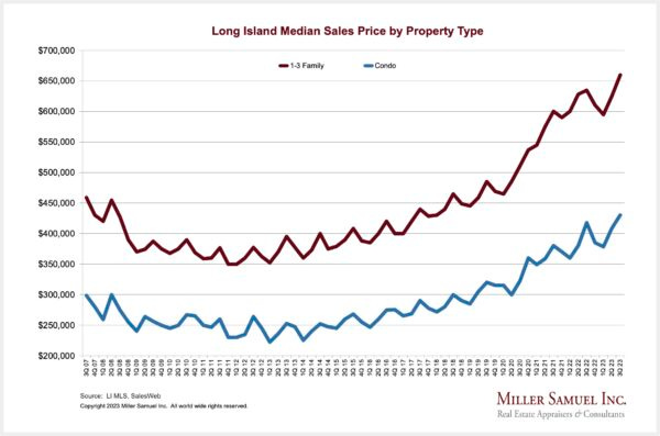 This quarter was a first for me – every way we break down the Long Island region (excluding the east end) for the report: Overall, Luxury, Non-Luxury, Single Family, Condo, Nassau, Suffolk, both median and average sales prices set new highs while sales and listing inventory declined.