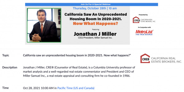 Yesterday I got to speak to a very large group of real estate agents in Northern California for an hour on behalf of Metrolist and CREB. It turned out to be a very engaging event and I’ll probably do something again for them in the first half of 2022.