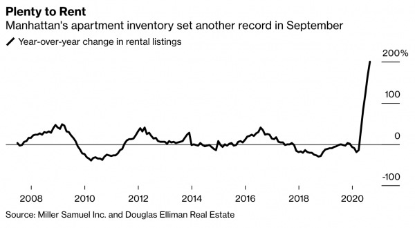 Manhattan rents plunge as coronavirus drives vacancies to record [Yahoo Finance]