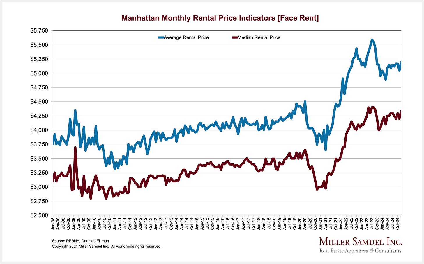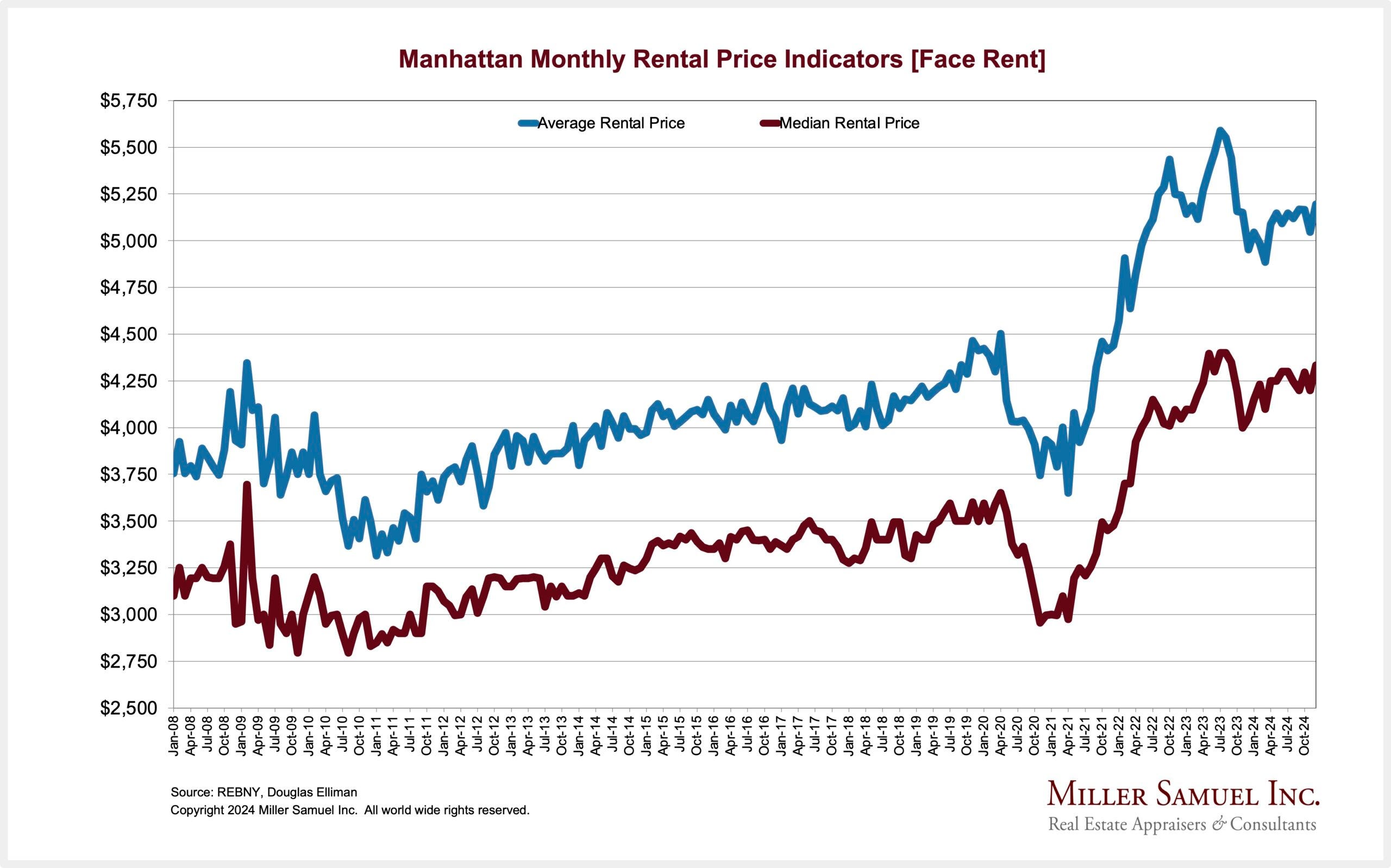Manhattan rents are climbing again.