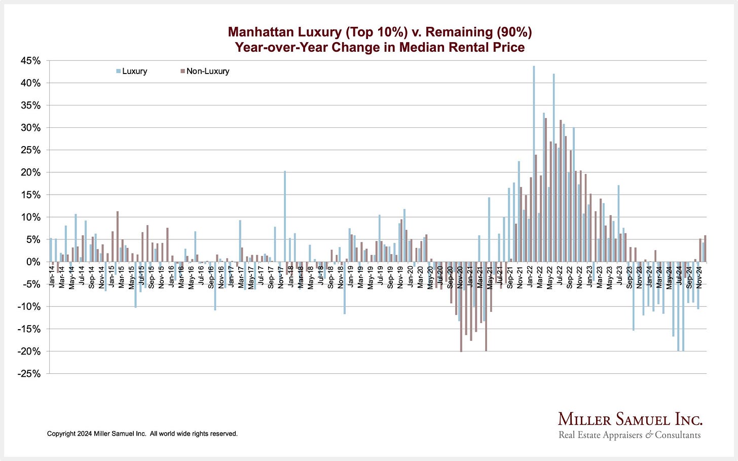 Luxury rents have gone through a weak period as luxury sales have been strong.