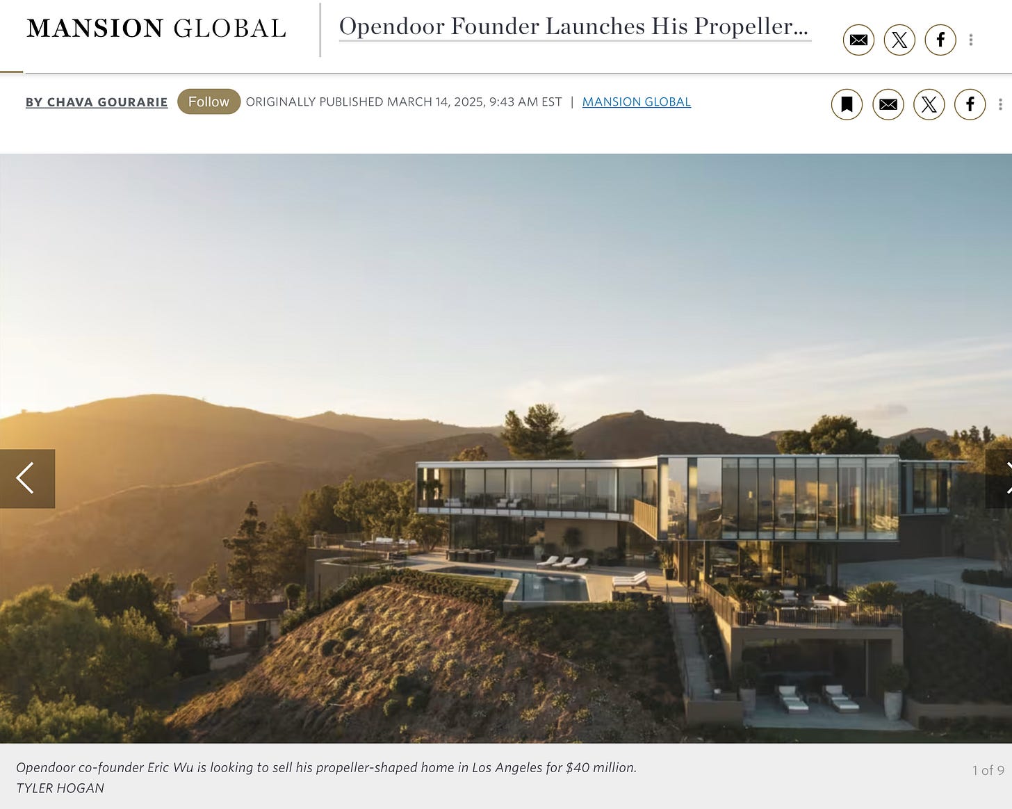 Before the pandemic, representatives of Opendoor spoke at RAC, an appraisal organization of some of the best residential appraisers in the US, to explain how the sausage was made. It was highly informative, but admittedly felt like a future threat to my appraisal profession. It also came across as a necessary service for a small niche of homeowners who want to sell quickly. I recall thinking about that presentation when Eric Wu, a cofounder of Opendoor, purchased a $32.25 million mansion in Bel-Air in 2022. He is attempting to resell it for $40 million in 2025. I doubt he used his Opendoor platform. Ha.