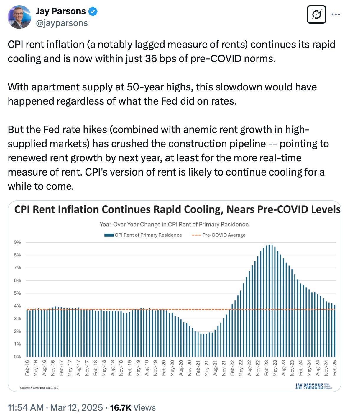 But what I can tell you is that rent growth is slowing across the US, with apartment supplies at 50-year highs: