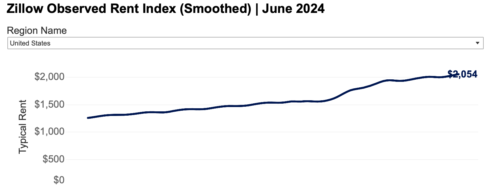 In Zillow’s just released June 2024 Rental Market Report rent growth is accelerating. Zillow’s “typical” rent was $2,054, up 3.5%, the fast rate of growth in eleven months.