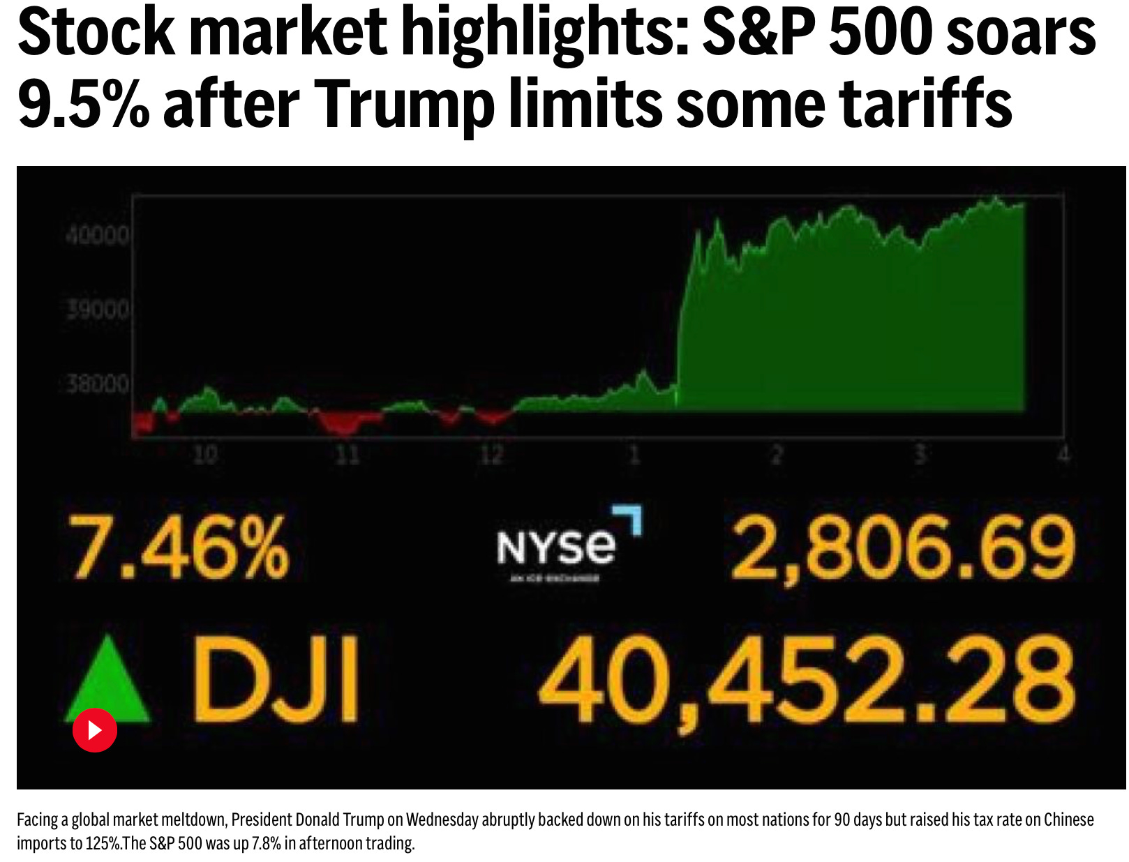 Stock Market Soared After Most Tariffs Delayed 90 Days