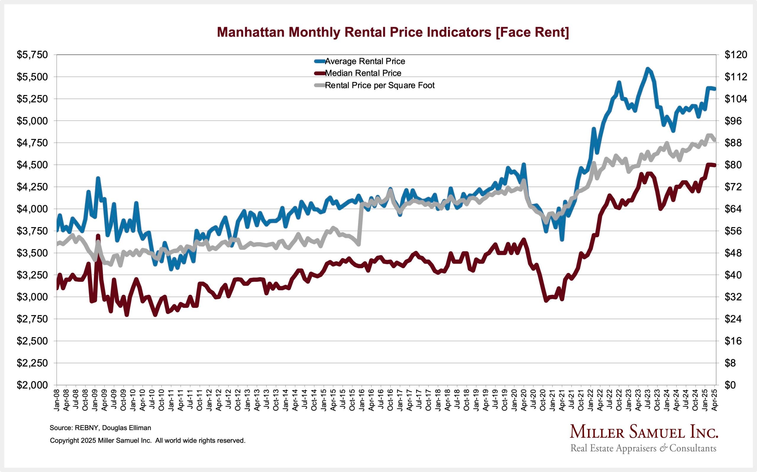 Our NYC rental research was published today, and new records were set, much like the results in February. In February, the median rent reached a new high of $4,500, and this month, it dropped by $5 to the second highest in history, effectively remaining at the same record level. Rents are up 10% year over year in Manhattan. “Trump, who has been teasing hefty tariffs since taking office in January, last week announced a baseline 10 percent tariff on nearly all nations, then tacked on reciprocal tariffs for 60 countries. Chaos ensued: Wall Street freaked, the S&P 500 suffered a correction, and mortgage rates and projections of recession risk resultingly surged.”