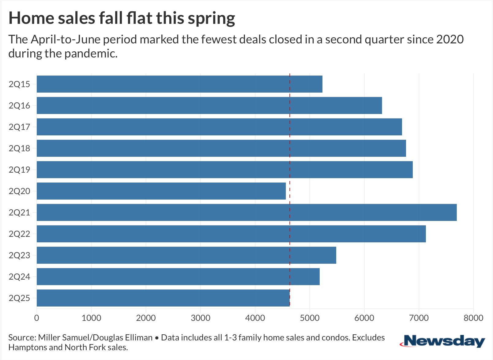 What’s so fascinating about the following Newsday chart is how it shows the steady decline in sales over the past four years, from the Fed rate pivot in early 2022 to the lowest level in a decade, excluding 2020, during the pandemic’s darkest days. Higher mortgage rates and low supply are the culprits. I suspect that a noticeable drop in mortgage rates will create a modest housing boom if that were to occur. I don’t see how that is possible at the moment.