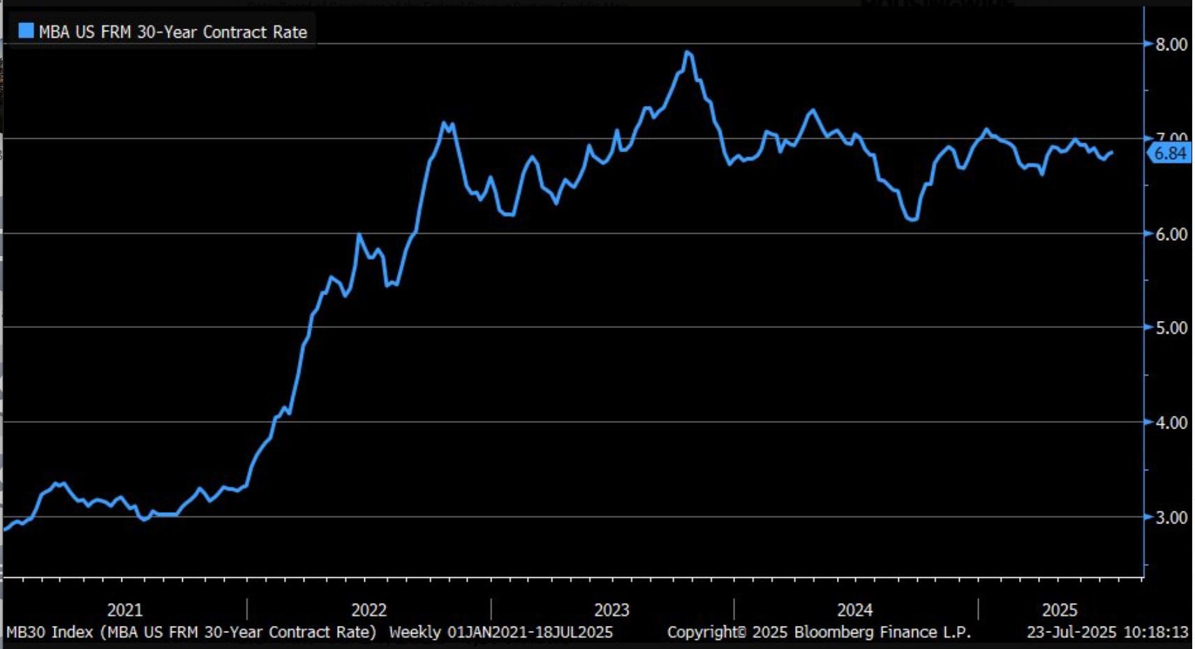 The housing market is challenged by mortgage rates remaining stuck just below 7%. Although listing inventory is expanding, it remains inadequate in many markets. Mortgage rates have remained remarkably stable over the past three years, which has weakened the lock-in effect, where consumers are waiting for rates to drop. Tariff policy is inflationary by definition. Adding to the federal deficit is inflationary. Threatening to replace the Fed Chair is inflationary. Pushing for a 3% rate cut is inflationary. All those items combined significantly reduce the likelihood of mortgage rates falling substantially.