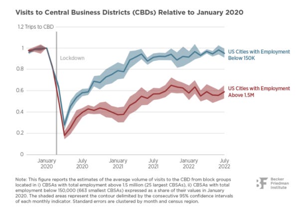 Remember that Kastle charts are overstating occupancy* because their pre-pandemic occupancy benchmark was 100%, which is simply incorrect (*measures card swipe activity as a proxy for occupancy).