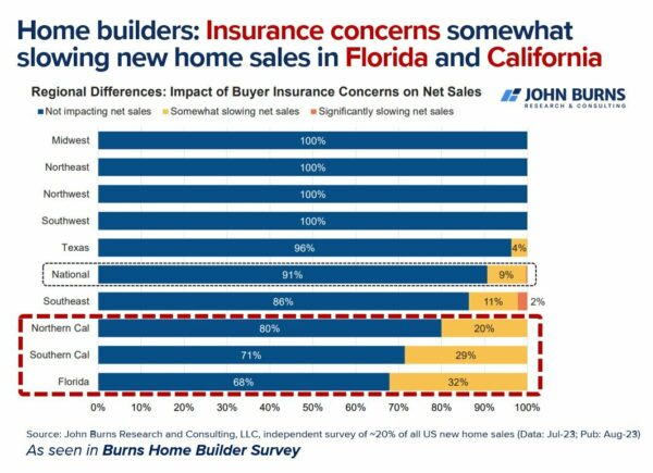 The latest survey by John Burns shows insurance challenges in California (wildfires) and Florida (hurricanes). the home-insurance premium in Florida has tripled over the past five years.