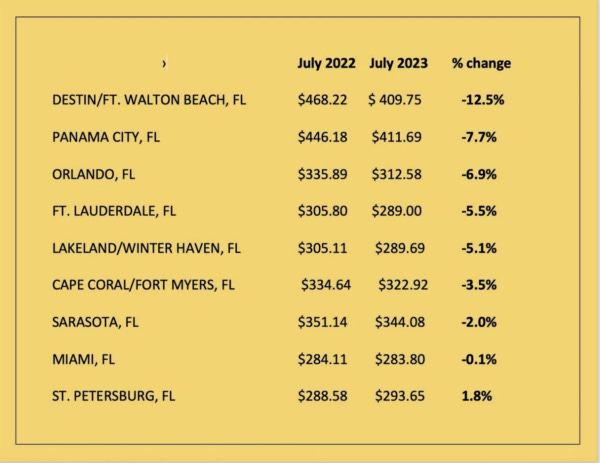 Airbnb rents are falling in Florida – Cruel Summer for Florida Airbnb Owners