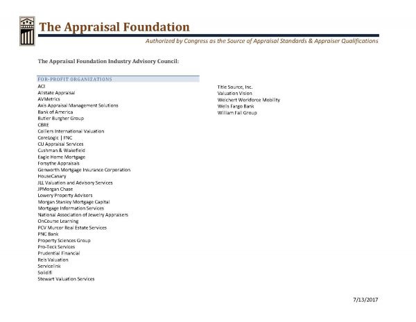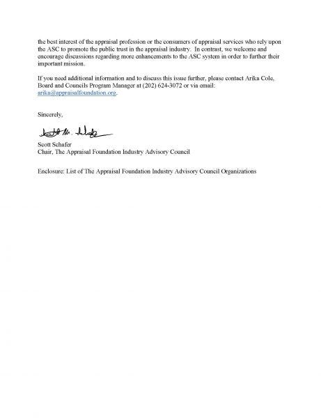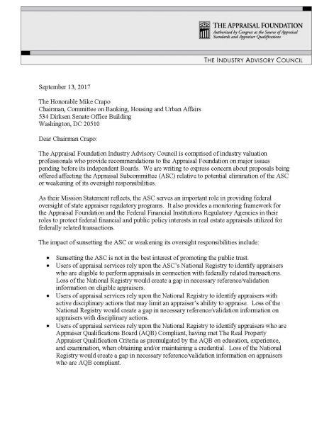 The following is a 2017 letter from The Appraisal Foundation’s Industry Advisory Council (IAC). The most telling quote from the letter that shows the hypocrisy of the recently termed bat-shit crazy letter (sorry) from TAF to ASC is this: