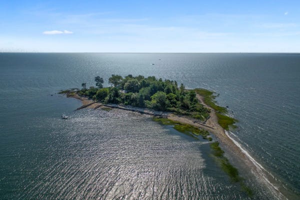This Sotheby’s listing is a small beautiful island not too far offshore from where I live in Connecticut. I’ve anchored our boat and swam offshore with my family. At high tide, the island becomes disconnected from the adjacent island.