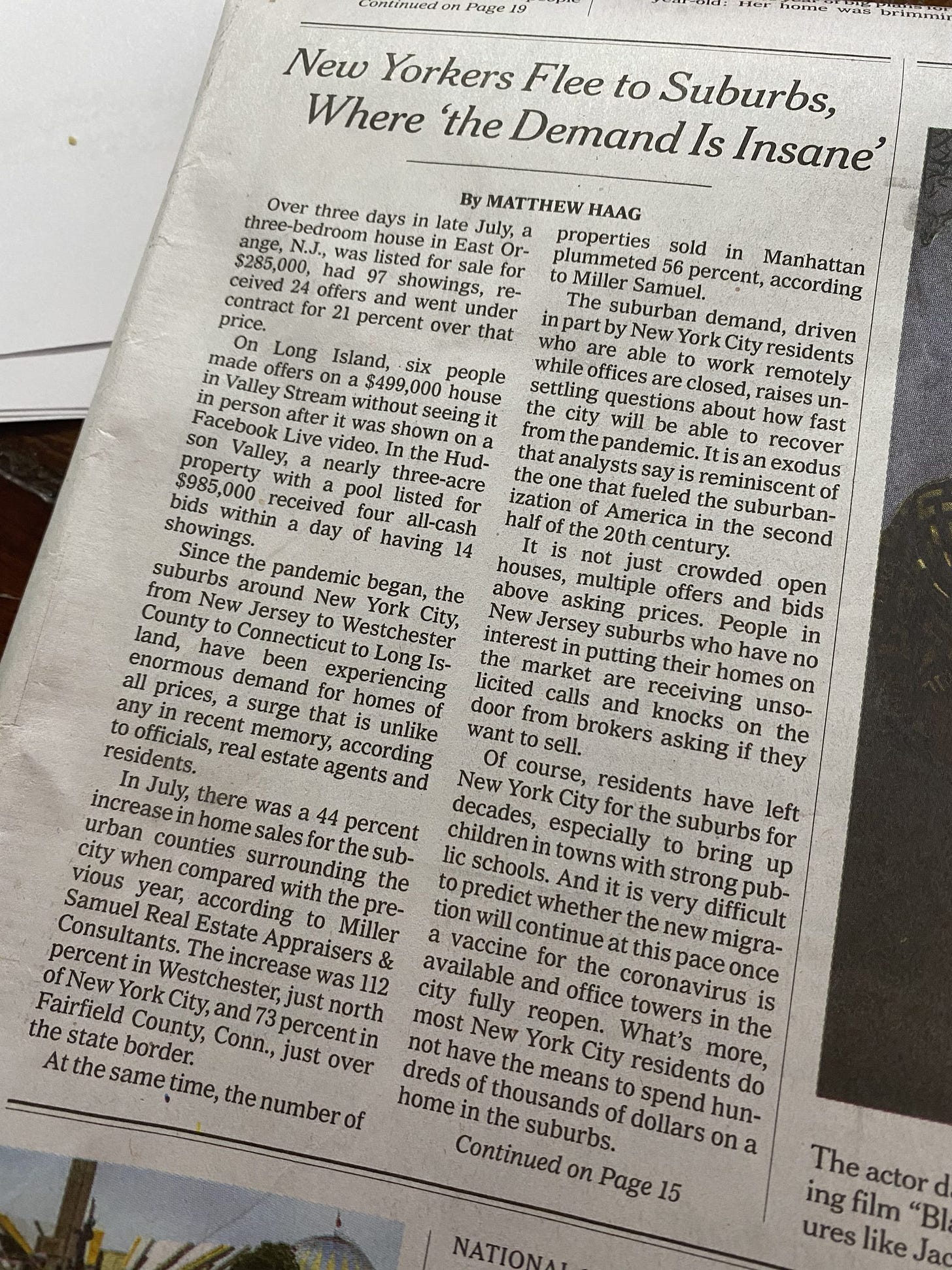 Suburban Home Sales Boom as People Move Out of N.Y.C. [NY Times]