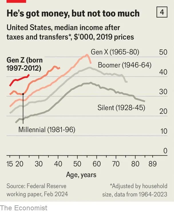 There was a good NY Times article, “They Cashed In. Now, They’re Helping Their Kids” [gift link], about this phenomenon. During my career, this phenomenon has been called “The Bank of Mom & Dad.” The thing is, kids can’t count on this. My wife & I helped our kids, not much with cash, but by letting each couple live rent-free in our house to save money quickly, and it really worked as a strategy.