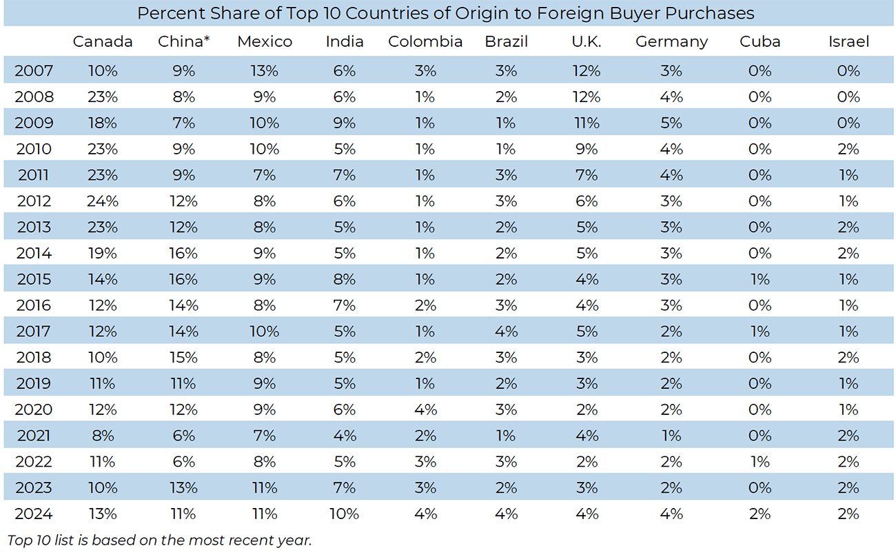 The above chart suggests that international demand for U.S. residential properties will be lower in 2025 as the USD strengthens further. There are a couple of report details I found interesting: