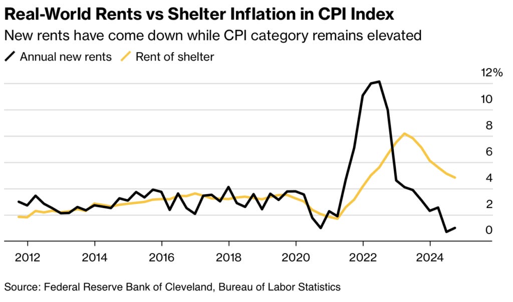 “The CPI is designed to measure inflation for the average consumer and samples rent increases for all renters, whether they’re re-signing an existing lease or entering a new one. Though current metrics from Zillow Group Inc. and Apartment List show rent growth has subsided, or even declined, in recent months, the CPI tends to follow those trends with a lag.“