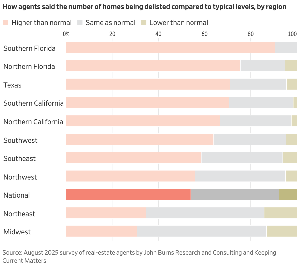 Delistings remain lowest in the Northeast and Midwest, where tighter inventory supports demand, while a parallel push toward private or off‑MLS “test” listings delivers little proven pricing premium, sells a small share privately, and often lengthens time to sale despite industry claims.