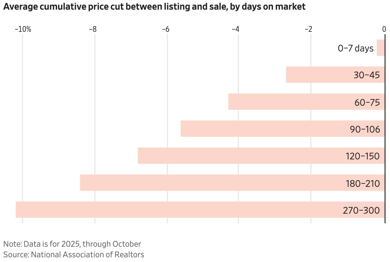 In 2025 through October, about 57% of U.S. home sales had at least one price cut, and properties that needed cuts typically took far longer to sell than accurately priced listings from the start.