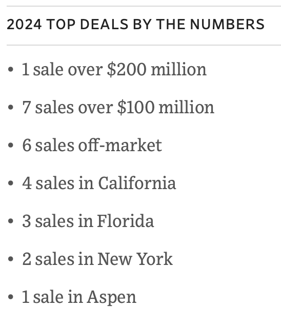 Across the U.S., 2024 was one of the slowest years for home sales since the 1990s. But it was a banner year for the ultrahigh end of the market, where buyers are so wealthy that interest rates or market fluctuations have little impact.