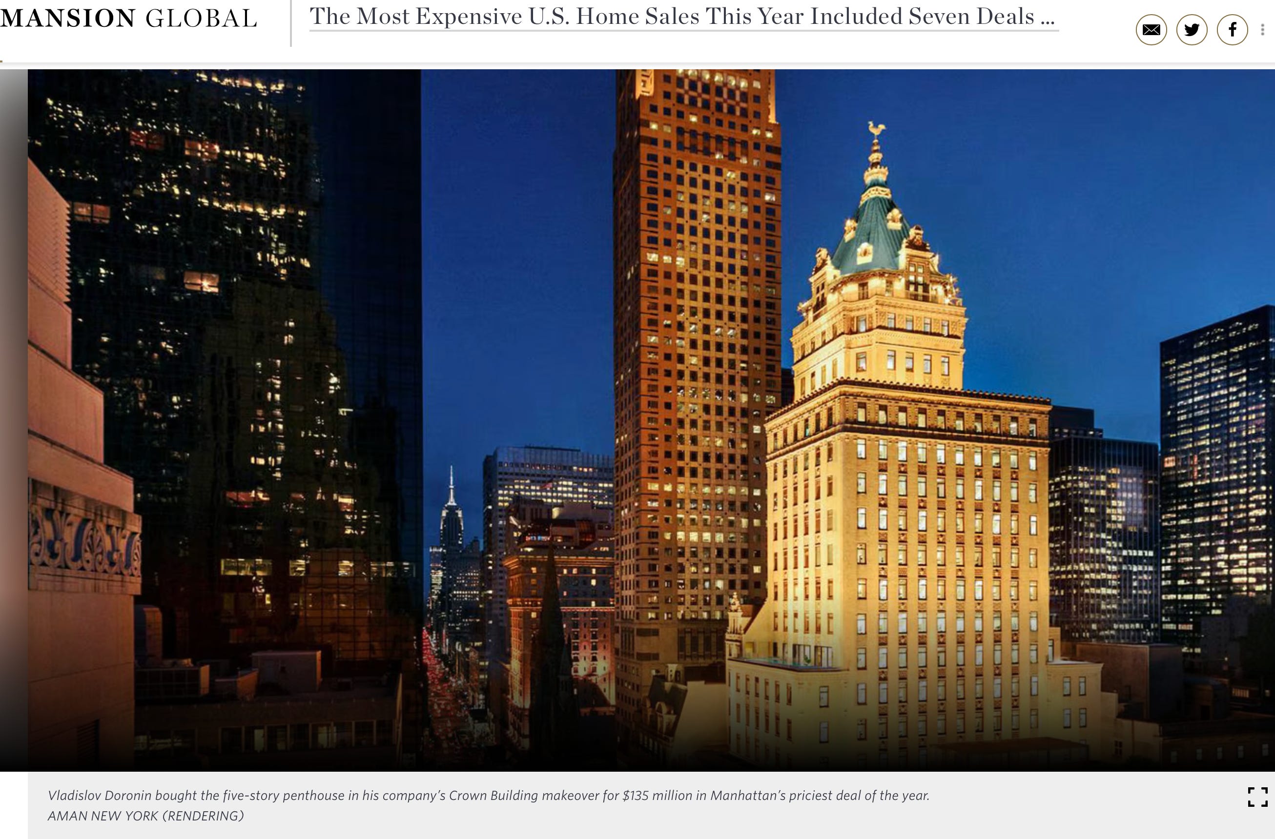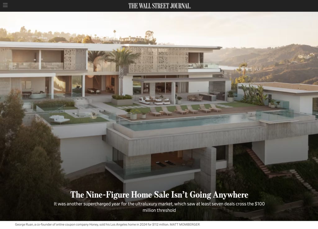 Wall Street Journal – The Nine-Figure Home Sale Isn’t Going Anywhere