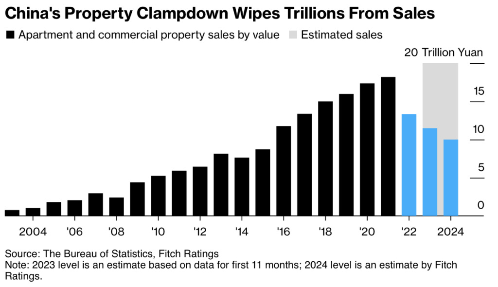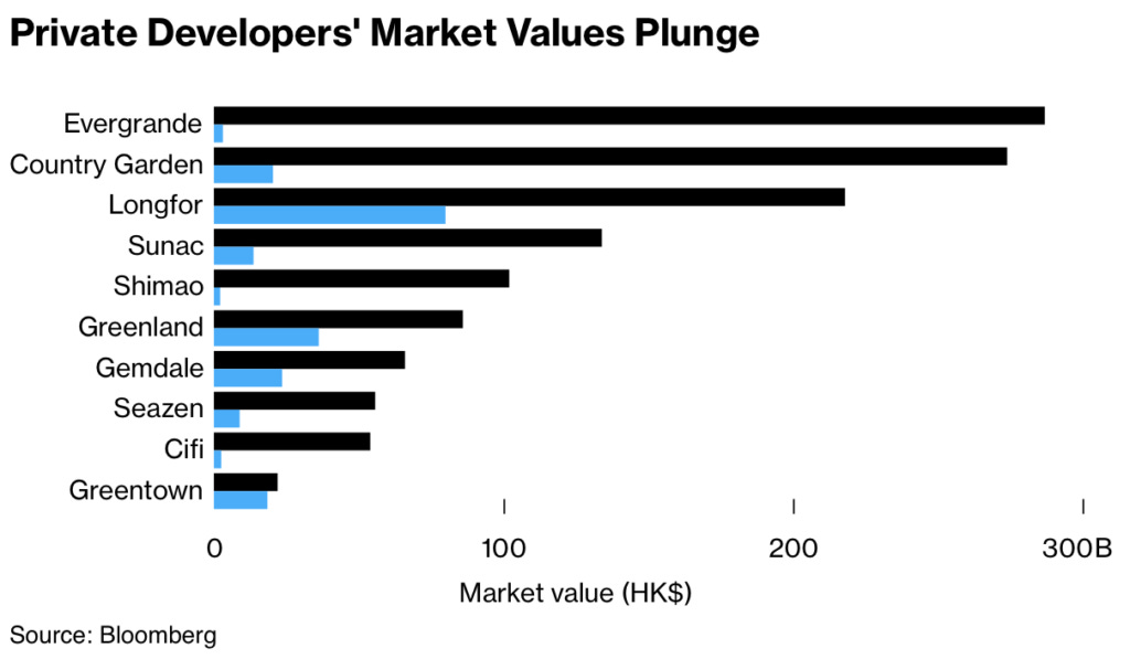Here’s a great piece in Bloomberg: China Property Crisis in Charts: Spillover Spreads Across Economy.