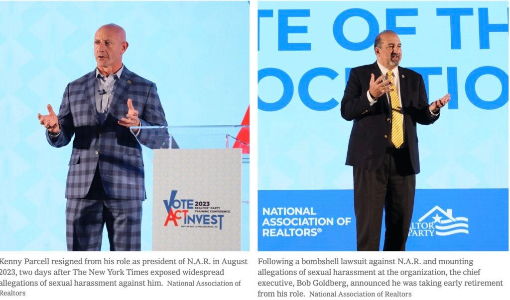 Many U.S. brokerage firms, amidst the numerous class action lawsuits and bad behavior of NAR leadership (and suit selection and fitting, my goodness, see images below),