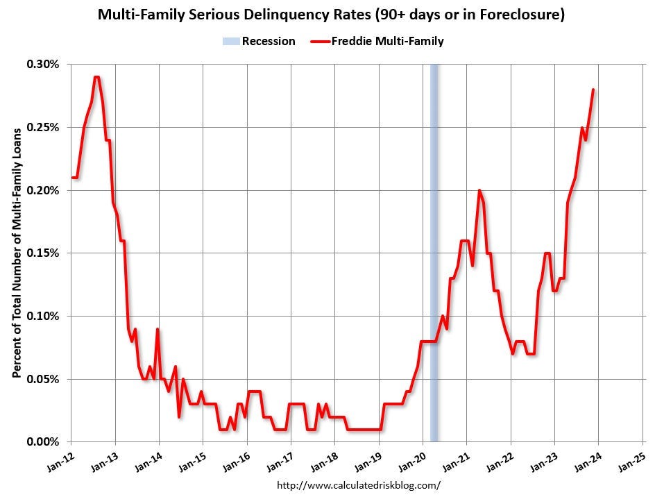 dropped the requirement of its agents to be members of the National Association of Realtors (NAR), the largest trade group. I anticipate membership falling quite a bit over the next several years, so it will be interesting to see how the trade group manages its expenses after years of dominance. The NY Times lays it out in Powerful Realtors Group Loses Its Grip on the Industry. The barrier to entry for membership is very low, and unlike the appraisal industry, where designations translate into income (MAI = more annual income), the drop could be steep and deep. The only saving grace for NAR is that with mortgage rates falling, sales volume should expand in 2024, and that may delay many members’ exits as they become more harried in their daily lives, making up for the recent housing recession. But the reasons for membership remain weaker today than a year ago. Toxic culture, behaving like a monopoly, very ineffective lobbying, required membership from many organizations were dropped, and lots of new ideas from the tech sector entered the housing market zeitgeist.