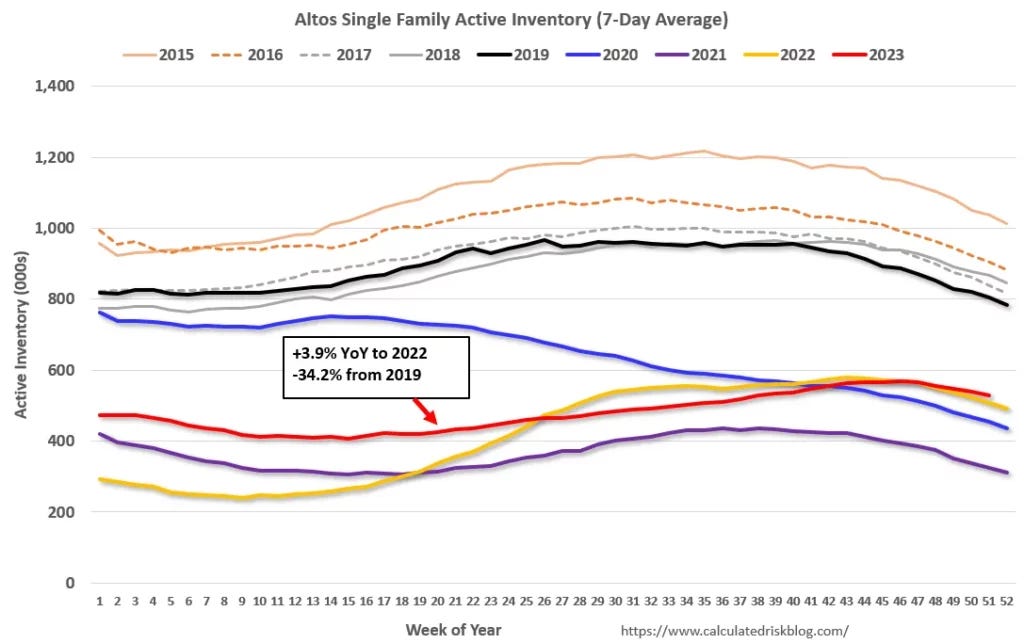 This market view of anemic listing inventory rebound was espoused by Moi in recent weeks and is well-presented by Calculated Risk, the must-read blog/substack on the economy.