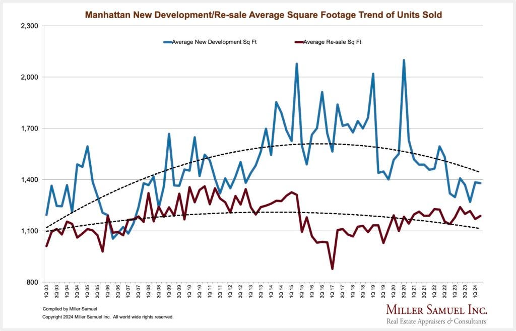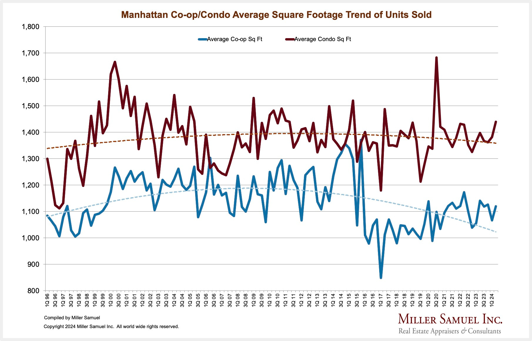 Average size of a Manhattan apartment fell YOY 5.1%, driving down median 1.5%