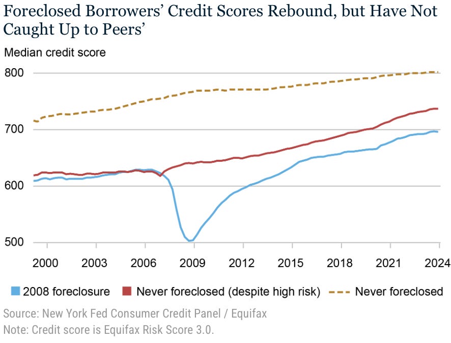 The piece is a great read: How Are They Now? A Checkup on Homeowners Who Experienced Foreclosure. In the current environment, foreclosures are a shadow of their 2010 selves but those climbing out of foreclosures still have lower credit scores.