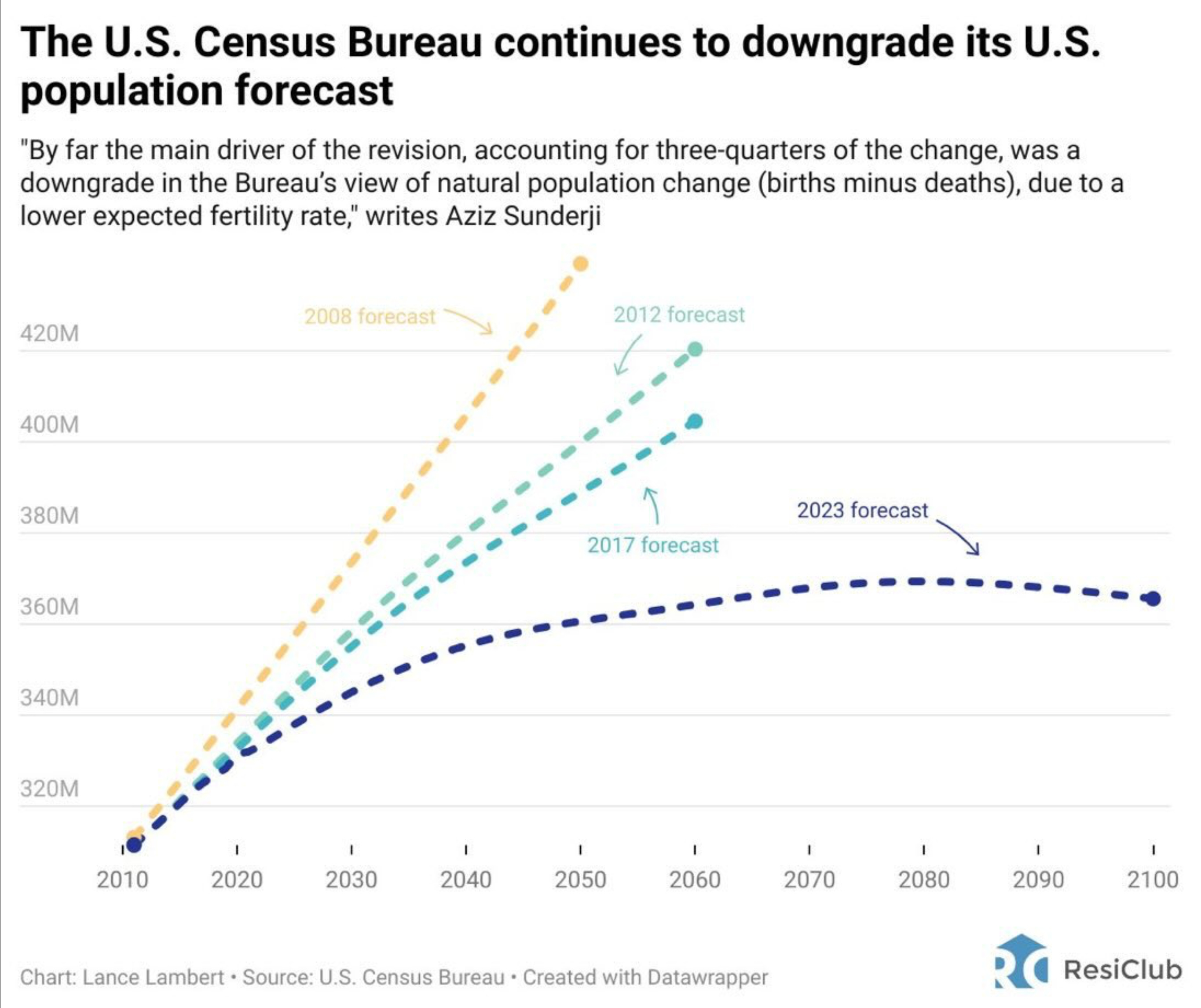 Back in 2021 I read Zelman & Associates groundbreaking piece “Cradle to Grave: Let’s Face It, We Have a People Problem” which is behind a paywall. The rules we learned in our careers about population growth are no longer reliable. And that’s why our falling birth rate is going to cause havoc on housing supply forecasting.