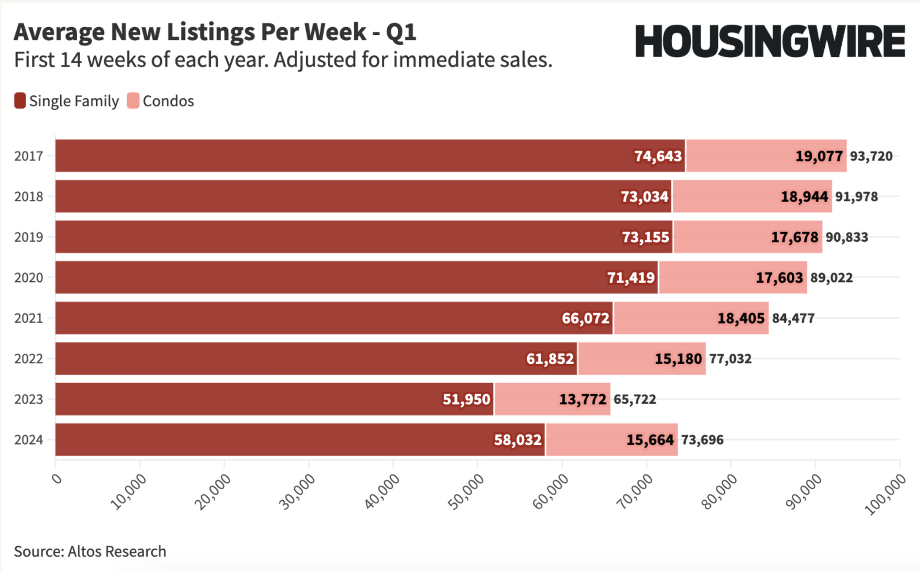Despite the historic market share relationship of 90% Existing/10% New, New can come to market much faster than resale supply. Resales need mortgage rates to drop sharply for a lot of supply to enter the market and break the lock-in effect.