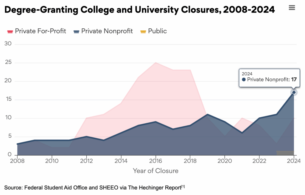 Falling enrollment and rising costs are closing small private colleges, leaving excess housing and weak degree ROI.