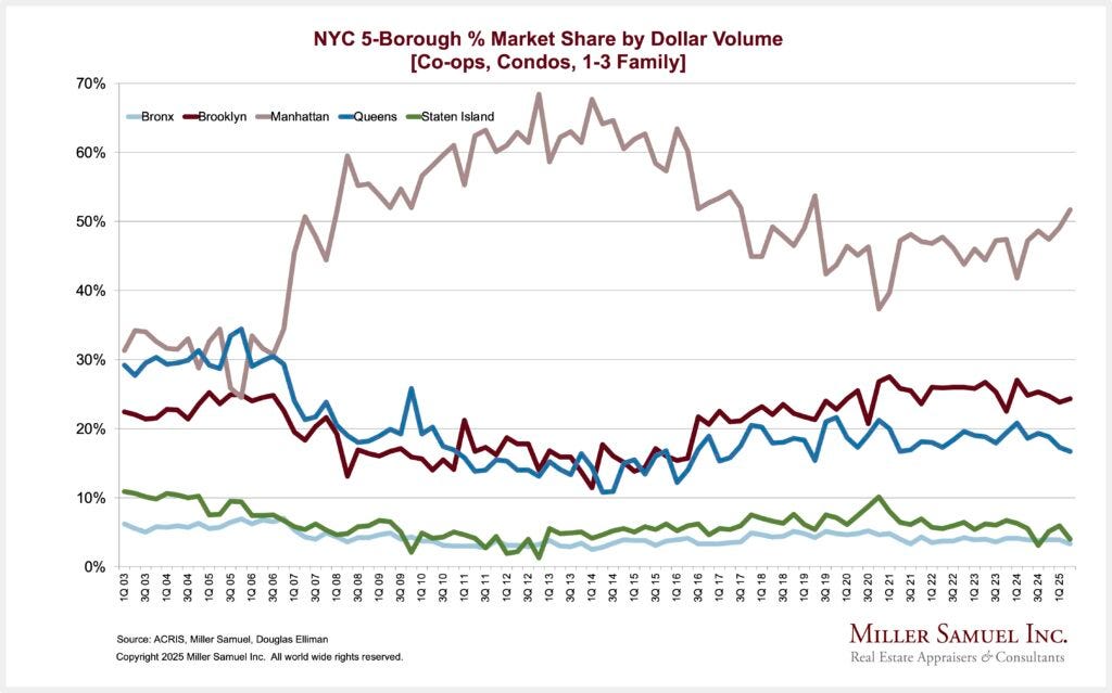 Manhattan is clearly in a separate league by dollar volume compared to the remainder of the boroughs.