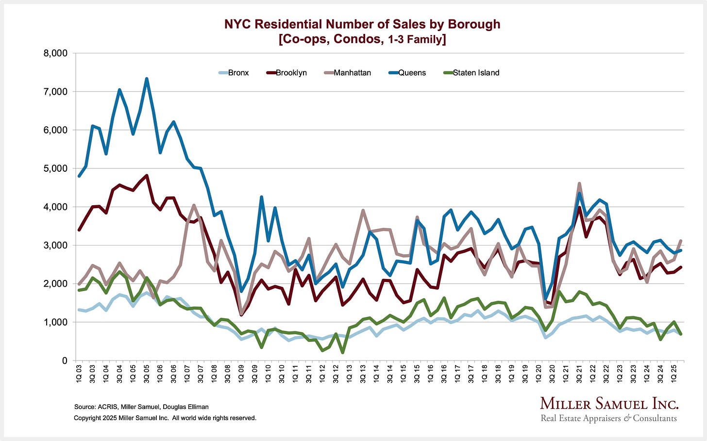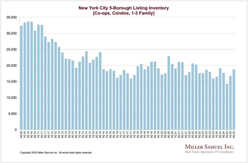 Manhattan inventory growth has leveled off coming out of the pandemic. The remainder, except Queens, has shown stability. Queens is clearly seeing a decline in supply.