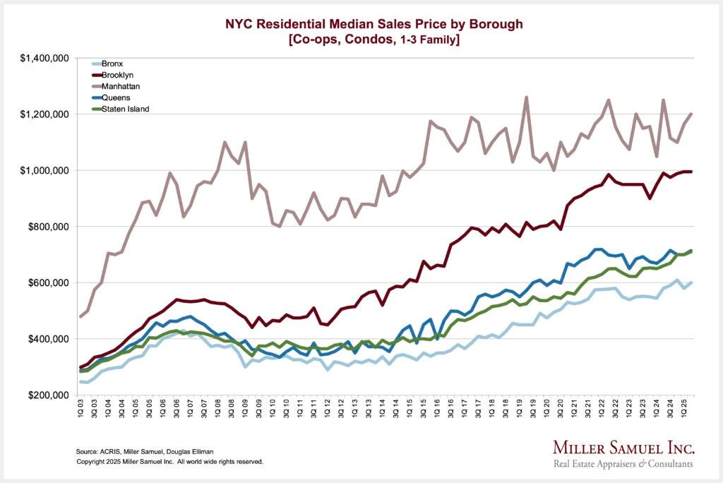 While Queens, Bronx, and Staten Island pricing remain close and their trends are consistent, Brooklyn is catching up to Manhattan rapidly.