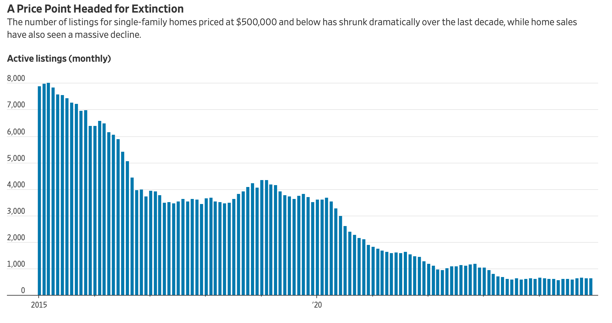 Supply of affordable listing inventory has disappeared because prices have risen a lot. It’s not that there isn’t demand for sub-$500 thousand properties, but rather the price points have surged to much higher levels so the supply has moved to a higher price category. The discount that buyers once enjoyed coming to Miami from more expensive markets like the northeastern U.S., have evaperated in a hot market (pun intended).