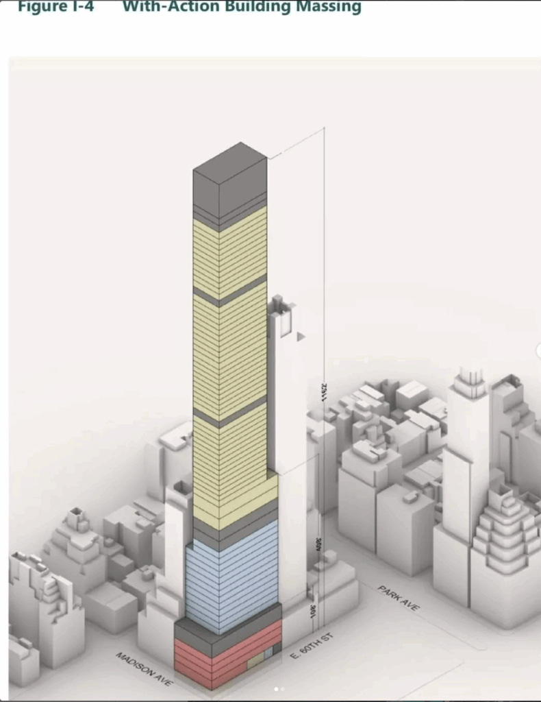 There’s a terrific story out by Curbed/New York Magazine, A Park Avenue Scuffle Over an $80 Million View, where some condo buyers within a recent super luxury tower are losing their views. Back in the 1980s, after we moved to Manhattan, I was working for an on-site real estate sales company in their new building on a relatively high floor. I was brand new to Manhattan at the time, but recall hearing a real estate agent answer the following question from a buyer: “I notice there is a gas station on corner across the street in line with the unit we like..should we be concerned?” The agent responded with something like “I guarantee that nothing will be built on that site.” Of course, a year later, a developer built an equally tall condo tower there. Ah, due diligence and buyer beware. Some parties at 520 Park Avenue (it’s not on Park Avenue) were not aware of this new project. Wow. Here’s a terrific New York Times piece I worked on in 2019 on the view topic: Rooms With a View (and How Much You’ll Pay for Them) (gift link). Check out the latest building schematic at 655 Madison Avenue from YIMBY. The building could be built as of right (shown below) or, if the City Planning Commission (CDC) approves the developer’s request, it could be built as tall as 520 Park. Again, wow.