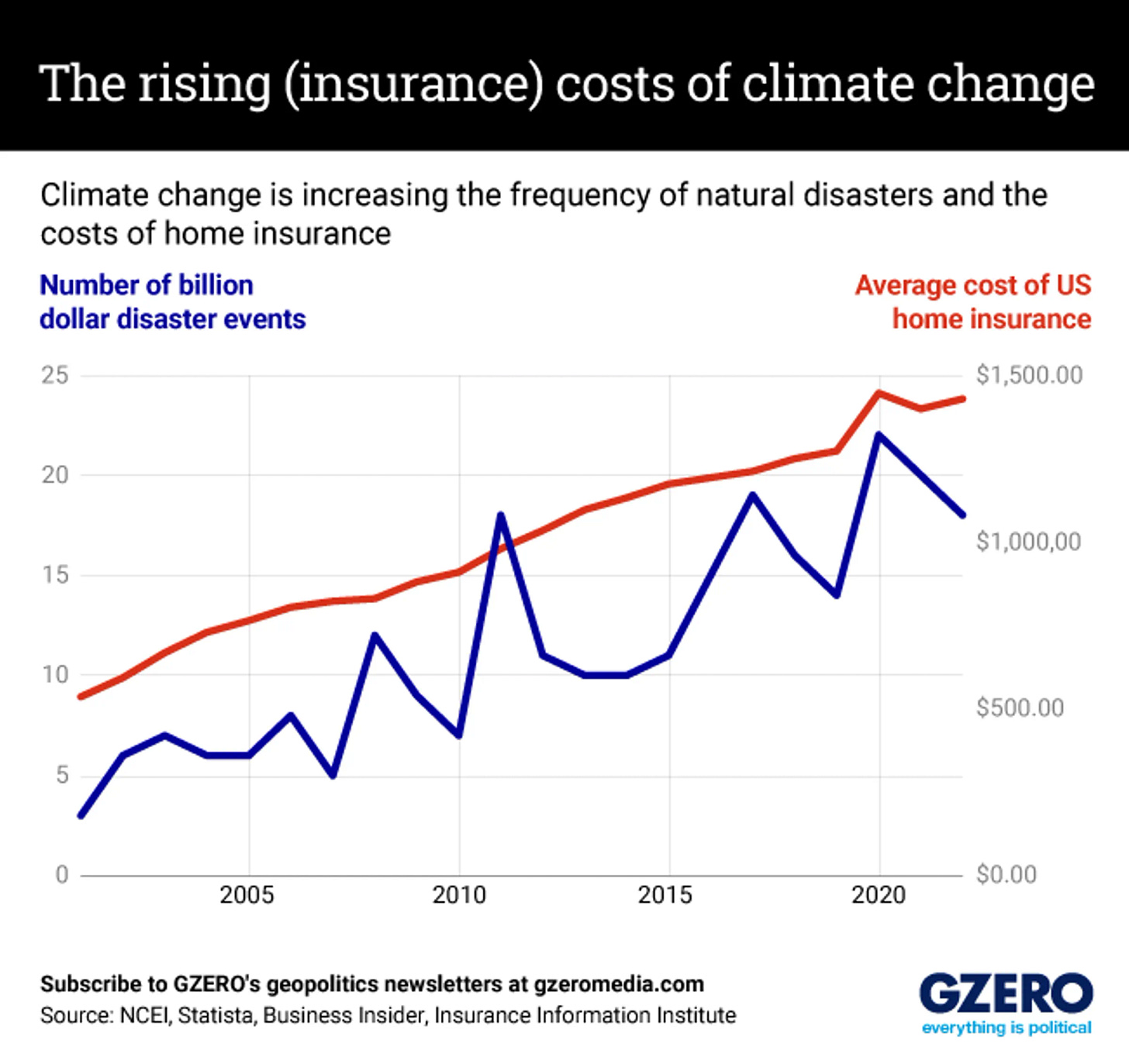 As time passes, the planet is experiencing more weather volatility. And more weather volatility brings more exposure to storm damage. And more storm damage brings higher housing-related insurance costs. Last year was one of the worst climate disaster periods on record. It’s all about the higher frequency of weather events and the cost to repair the damage they cause that is pushing insurance higher, and in same case, forcing some insurance companies to leave high-risk states.