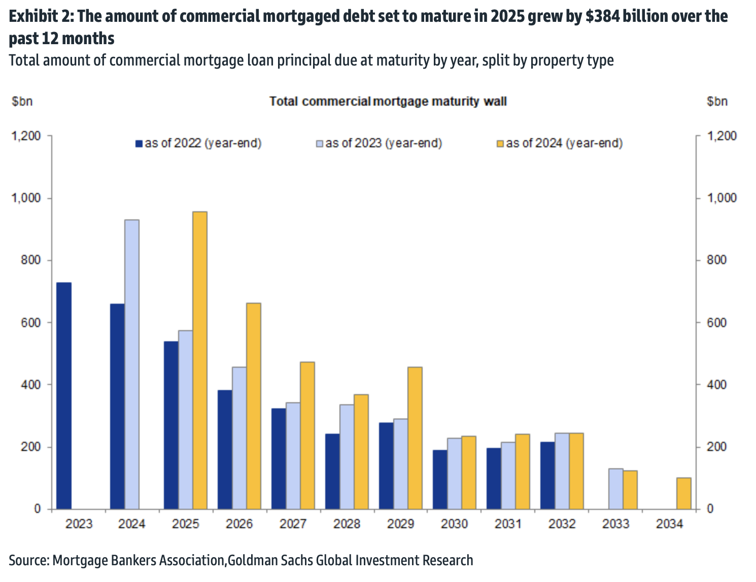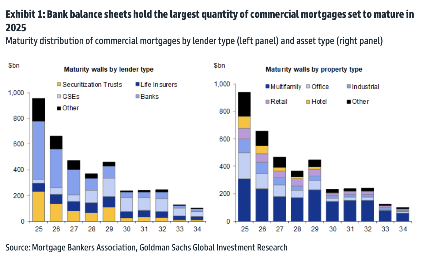 The year 2025 looks like the peak of commercial office building mortgage maturity.